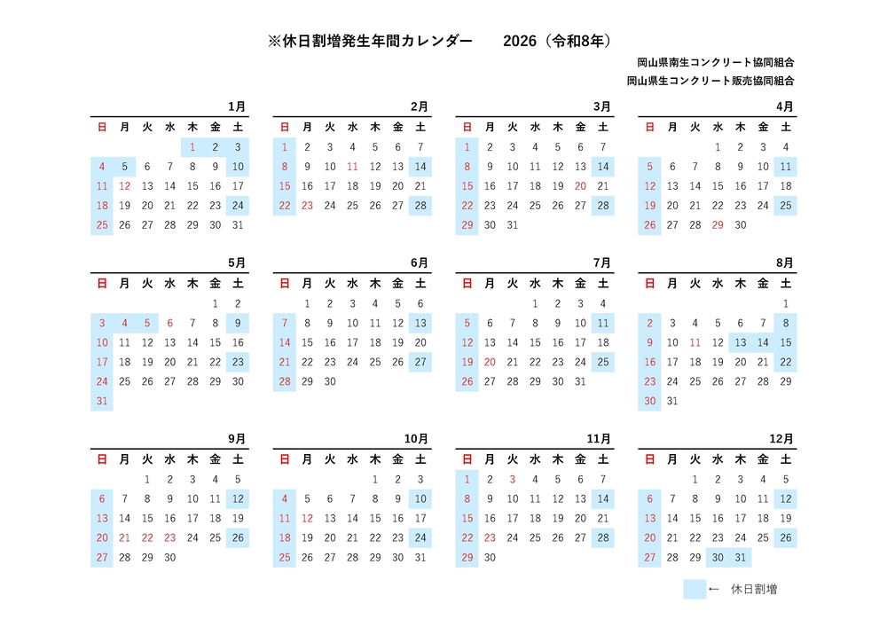 令和8年年間休日割増