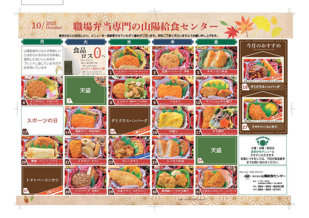 10月の献立表
