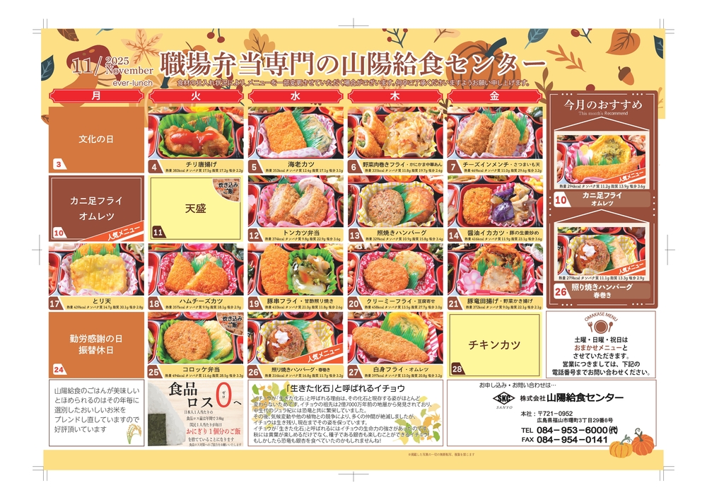 11月の献立表
